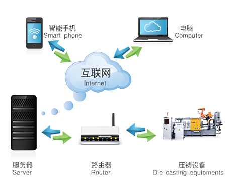 聯(lián)網(wǎng)后可隨時(shí)隨地通過智能手機(jī)或電腦掌控壓鑄機(jī)及壓鑄生產(chǎn) 過程,提升壓鑄生產(chǎn)管理水平,提高生產(chǎn)效率,降低管理成本。