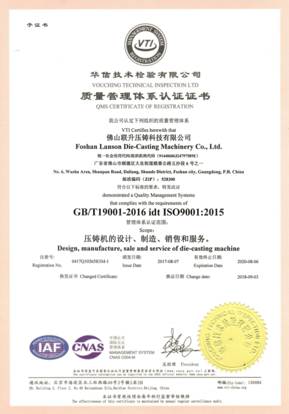 聯升注重于壓鑄設備的精細化設計,精睿工藝,通過不斷的技術創新,提升設備的穩定性及運行效率;聯升將品質視為企業的生命,通過完善的品質管控體系,嚴格做到有問題的零配件不進行裝配,有問題的設備不進行出機;聯升給客戶提供優質的服務,為客戶排憂解難,全力保證客戶正常生產。聯升的發展愿景為:短期內做到國內前三,創建行業一流品牌。