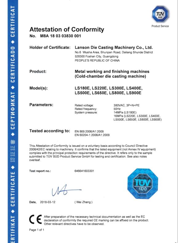 聯升秉著質量是企業生存和發展之本,致力于為顧客提供優質可靠的產品。質量第一,既是對我們自己的要求,更是對客戶的承諾。聯升嚴格按照質量管理體系的要求嚴把質量關,配備了精密的檢驗設備,為零配件質量及整機性能提供了有力保證。產品通過了CE、ISO9001-2015版質量體系認證。
